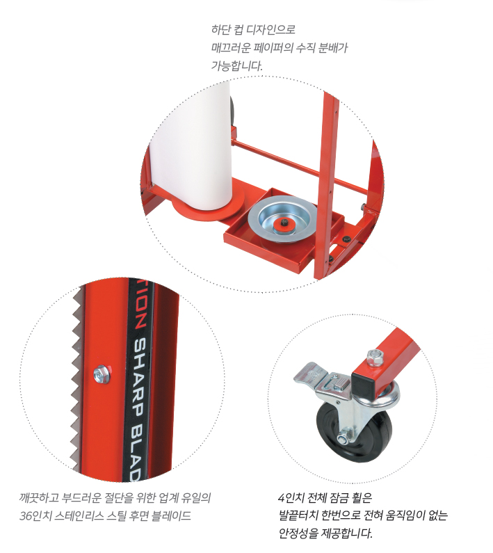 - 깨끗하고 매끄러운 절단을 위한 업계 유일의 36“ 스테인리스 스틸 절단날