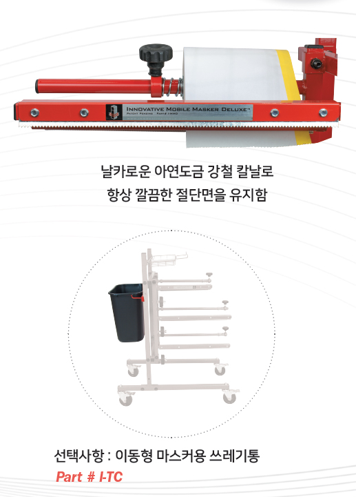 - 최대 12” 마스킹페이퍼 롤 1개와 최대 18” 마스킹페이퍼 롤 2개를 장착