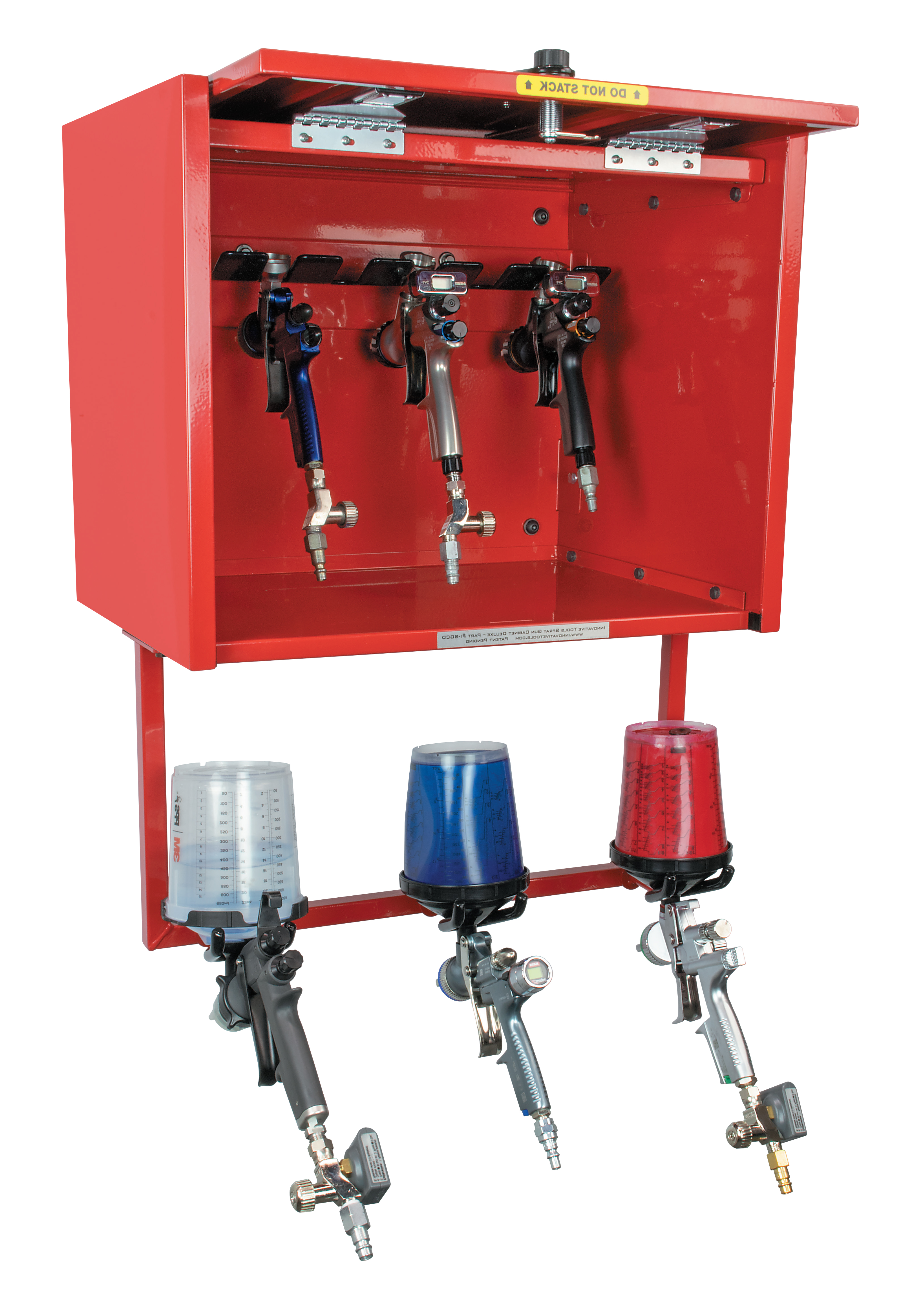 최대 6개의 스프레이 건을 안전하게 보관할 수 있도록 설계된 캐비넷