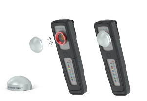 ■ 용매 저항성 유리 렌즈와 함께 제공됩니다. 전면의 배터리 표시기는 배터리를 재충전해야 할 때를 보여줍니다.