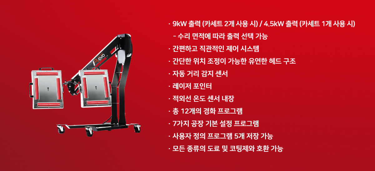 다양한 도장 제품을 빠르고 손쉽게 경화시킬 수 있도록 설계된 이동식 적외선(IR) 장비