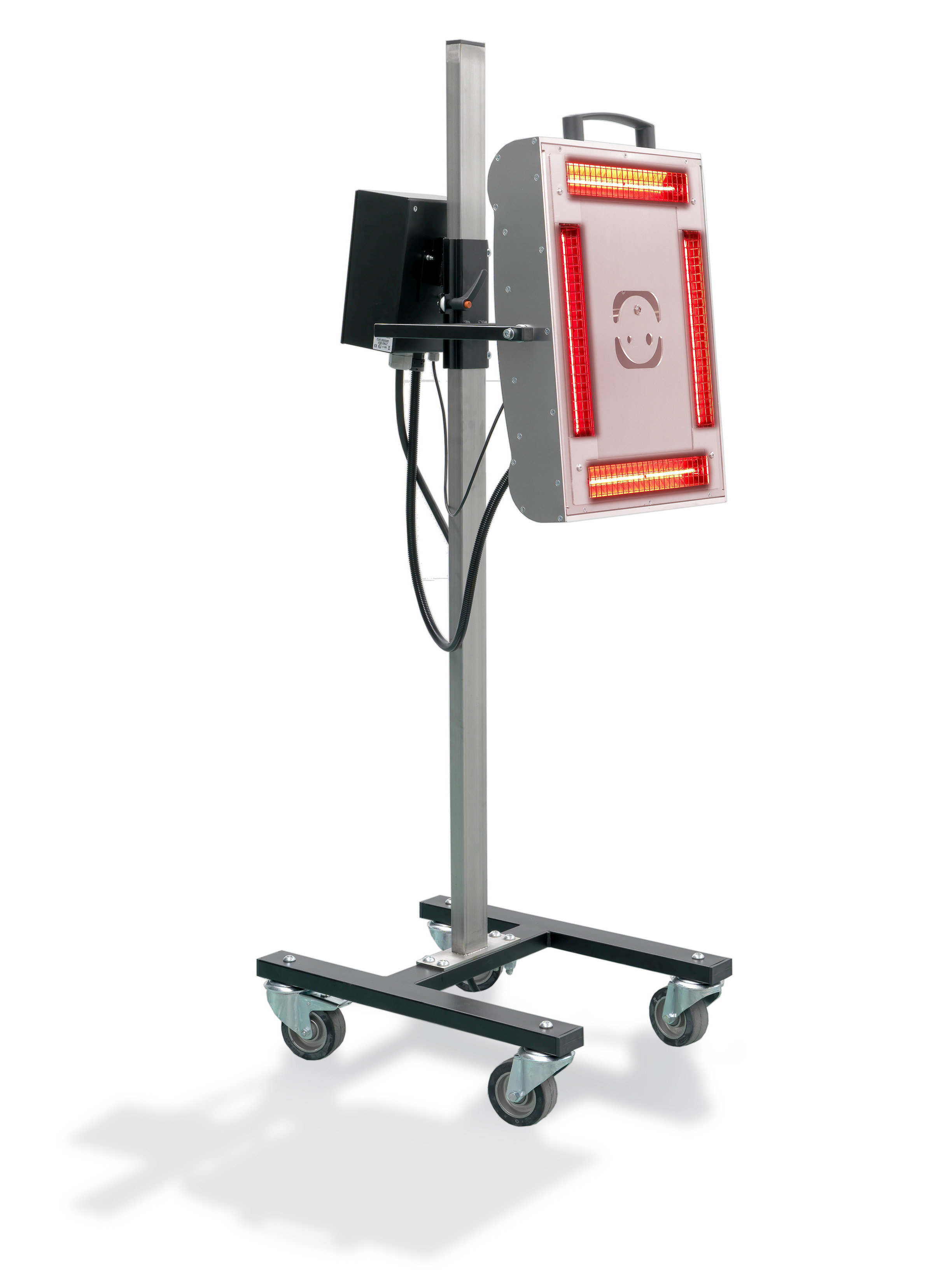 - 이동식 받침대에 천장형 조명을 장착한 콤팩트한 이동식 적외선 건조 장비