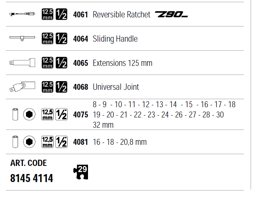 라쳇, 소켓, 액세서리, 점화 플러그용 소켓 3종 포함