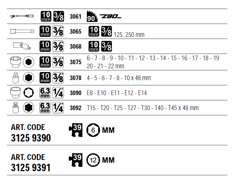 6 / 7 / 8 / 9 / 10 / 11 / 12 / 13 / 14 / 15 / 16 / 17 / 18 / 19 / 20 / 21 / 22 mm