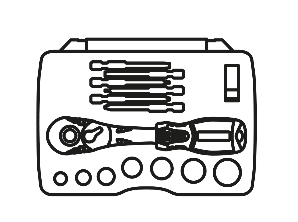 책상 서랍이나 오토바이 시트 아래에도 보관 가능한 컴팩트 올인원 공구 세트입니다.