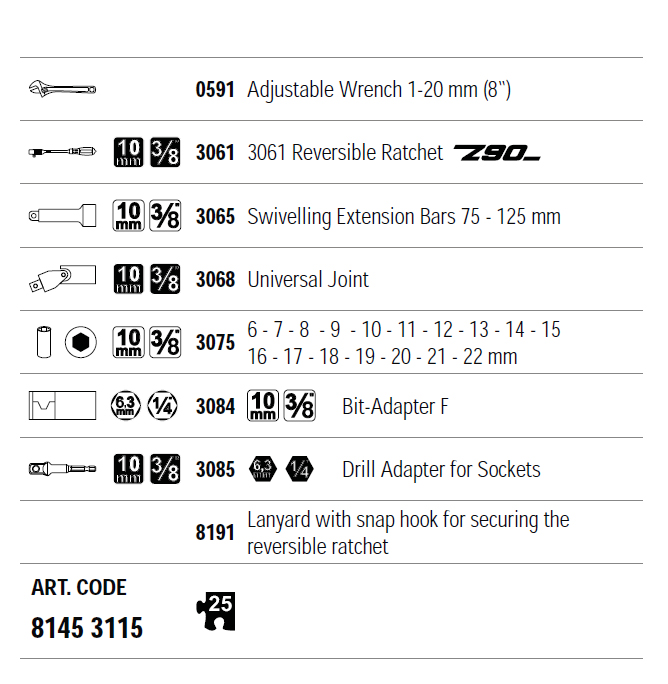 6~22mm 체결 작업에 최적화된 26PCS 구성